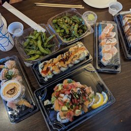 First sushi place I've tried since moving from out of state. I ordered the Angry hamachi, Cali rolls, garlic edamame, salmon sashimi and fried gyoza. I thoroughly enjoyed it all! I usually prefer my gyoza pan fried on one side, but it was delicious regardless. Easy to find location, plenty of parking. The restaurant itself is very small inside and a few tables outside. I ordered to go and good thing because it was packed! I will be back! Very generous portions as well.